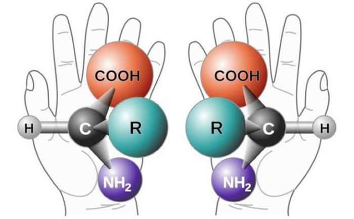天然氨基酸是蛋白质的组成部分,它们几乎都是左旋结构,或者说是“左撇子”,而那些构成RNA和DNA的天然糖,几乎都是右旋结构,或者说是“右撇子”。这一点非常重要,如果你用另一种形式的分子替换任何一个分子,整个系统就会崩溃。