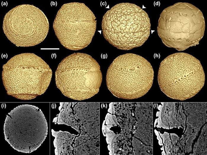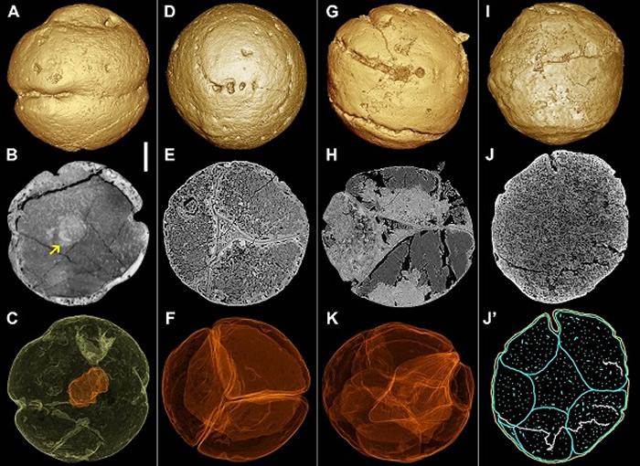 (化石网报道)据中国科学院南京地质古生物研究所:6亿年前的瓮安生物群中,有一类胚胎状化石表面上长有奇怪的螺旋状线圈,这到底是一种什么样的生物?长期以来学界有各种假说,但均没有足够的证据证实。近日,中国科学院南京地质古生物研究所牵头的国际团队,通过高分辨率显微CT和同步辐射显微断层成像技术,对这类化石的内部结构进行了研究,最终破解了其身世之谜。相关研究于2020年6月13日在线发表于美国《科学》杂志子刊《科学进展》(Science Advances)上。
