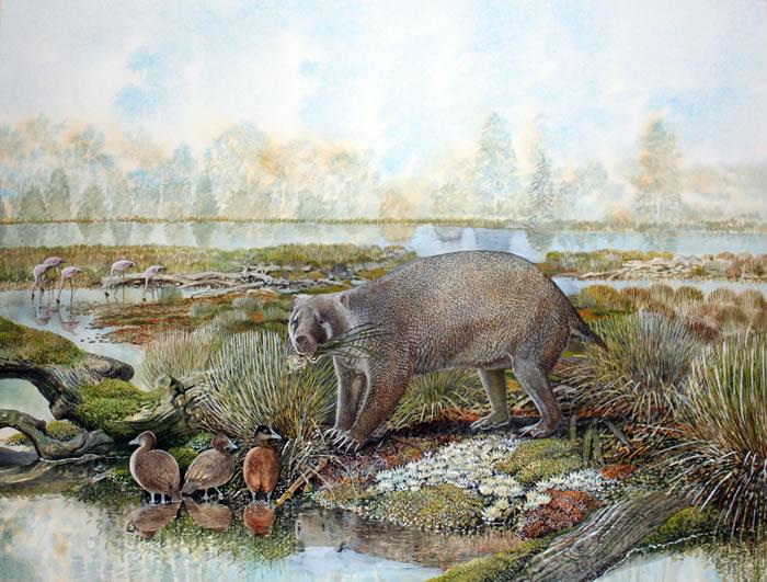 澳大利亚发现渐新世时期神秘新动物化石Mukupirna 大小为现代袋熊四倍(Credit: Painting by Peter Schouten. / Julien Louys, Griffith University and Robin Beck, University of Salford.)
