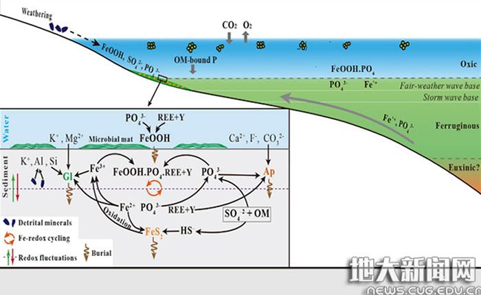 论文提出的古海洋化学条件和海绿石-磷灰石成因模式