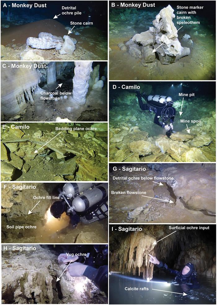 新发现的遗址由3个洞穴组成,这些洞穴约7000年前被上升的海水淹没。2017年,潜水者在其中一个洞穴深处探索时,注意到一些破碎的石钟乳和石笋、奇怪的岩石堆、坑坑洼洼的石壁和地面,以及头顶熏黑的岩石。这里距离洞口数百米,自然光无法穿透。