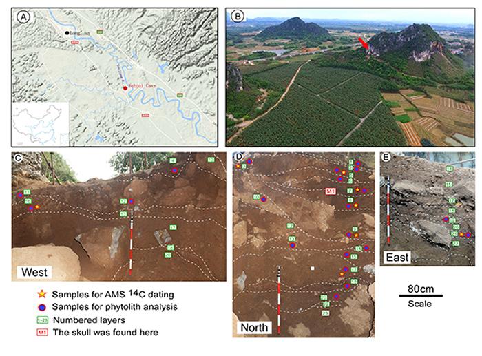 近年来广西旧石器考古又有了重要发现,尤其是广西文物保护与考古研究所发掘了娅怀洞遗址。娅怀洞遗址位于广西隆安县,包含了旧、新石器时代不同时期的文化遗存。该遗址发现了我国极为少见的完整人类头骨化石,以及大量的打制石器和哺乳动物化石。中国科学院古脊椎动物与古人类研究所吴妍研究团队,在获取娅怀洞遗址的系列样品后开展该遗址古植物遗存的研究。
