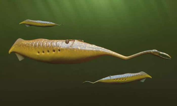 耶鲁大学的研究者们宣称,距今大约3亿年前,这种外形奇特的动物在伊利诺伊州的近海水域里游弋,很可能是一种掠食性脊椎动物,并且与七鳃鳗关系较近。