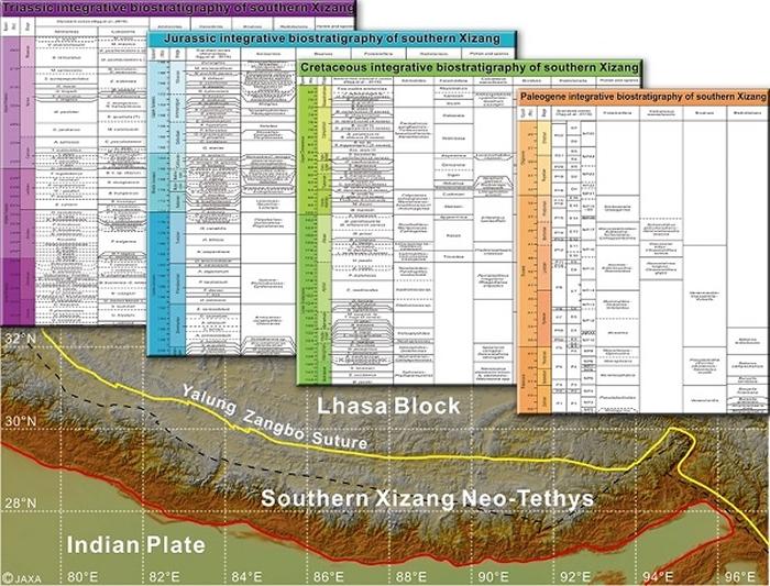 近期,中国科学院南京地质古生物研究所的李建国研究员研究团队以他们所取得的材料和进展为基础,结合他人的研究,为西藏南部新特提斯域三叠系-古近系建立了一个新的多门类综合生物地层框架。该成果已在线发表于国际地质学综合期刊《亚洲地质》(Journal of Asian Earth Sciences)上。