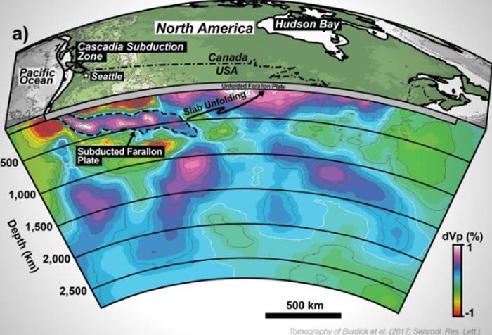 (化石网整理)据cnBeta:外媒New Atlas报道,由于板块的移动和下沉,地球的面貌在它的生命中发生了巨大的变化。现在,休斯敦大学的地质学家宣称在加拿大地表下方发现了数千万年前下插到地表下的古构造板块的遗迹。