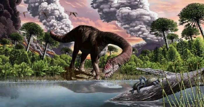 报道称,科学家在阿根廷巴塔哥尼亚的植物化石中发现了发生在约1.79亿年前的这一惨痛事件的证据。他们还发现了一种此前不为人知的恐龙。这种名为日出野马龙的物种是身躯庞大、脖颈极长的蜥脚下目的一员。