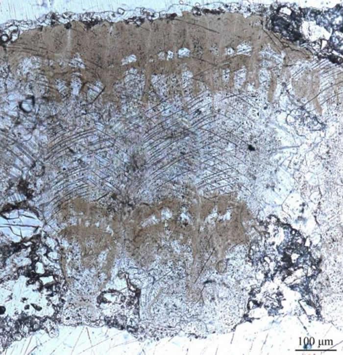 休宁伞形蛋蛋壳径切面显微结构示伞形壳单元的排列
