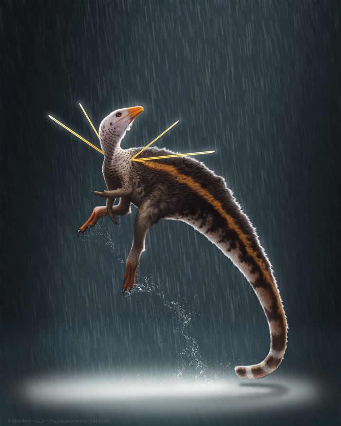 古生物学家发现恐龙新物种Ubirajara jubatus 肩膀上长出奇怪的尖刺(CREDIT:Artwork © Bob Nicholls / Paleocreations.com 2020)