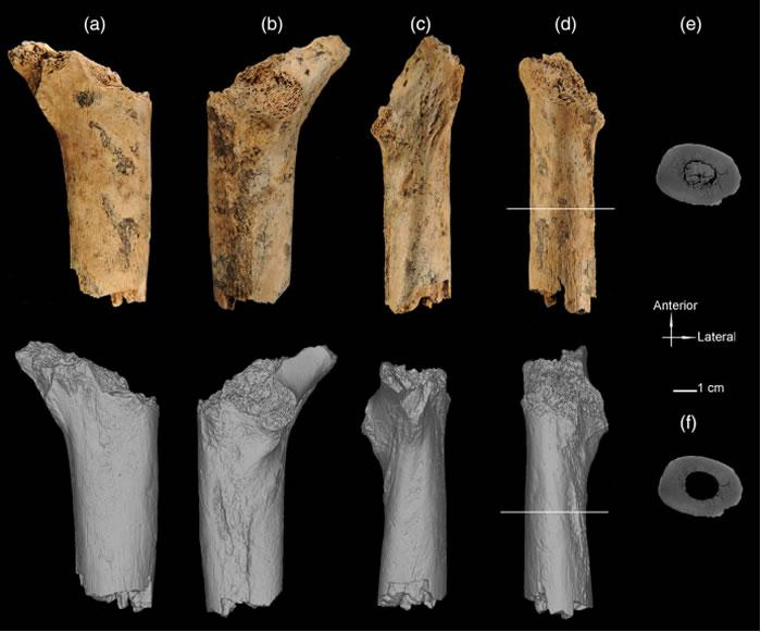 邢松表示,科研团队通过与中晚更新世(约78万-1万年前)的直立人、尼安德特人、早期现代人等对比发现,HLD11股骨在整体尺寸、生物力学指标、外轮廓形状上,处于中更新世(约78万-13万年前)和晚更新世(约13万-1万年前)古老人群(尼安德特人)变异范围内;HLD11股骨外轮廓形状较圆,无早期现代人明显的股骨脊,这种形态的股骨在周口店以及其他中更新世人群中较为常见,直到晚更新世早期现代人出现的时候才出现股骨脊这个形态特征。
