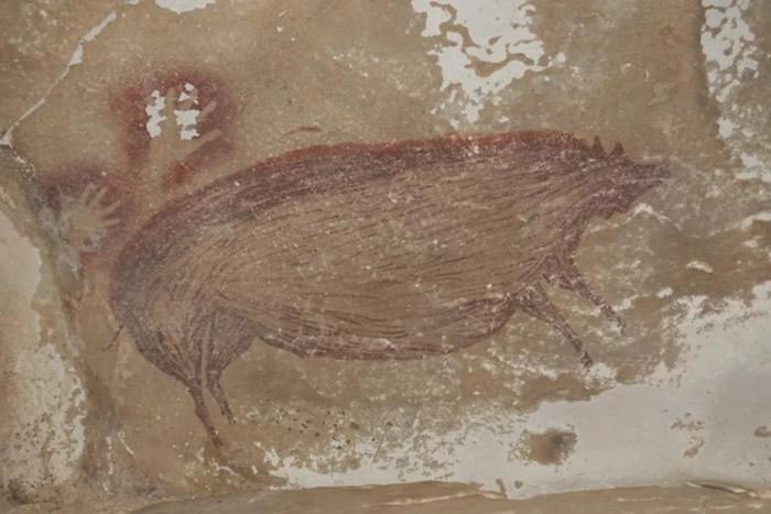 昆士兰省葛里菲斯大学的考古团队在2017年发现疣猪壁画是,最近才验证出它的年份。壁画清楚勾勒一头真实大小的疣猪,猪屁股上方有??两个人类手印,相信是画家的“签名”。该团队同期还在附近发现另一幅约3.2万年前的疣猪画像,证明数万年来,当地居民都以狩猎疣猪维生。