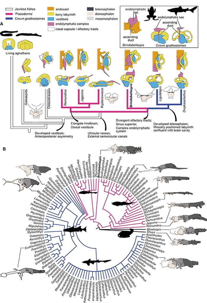 最新的国际合作研究中,朱幼安等应用高精度CT扫描数据,对在澳大利亚发现的两件新的布林达贝拉鱼头部标本进行扫描和详细研究后发现,正是在过去不可知的区域内,隐藏着十分重要的信息——布林达贝拉鱼内耳的上部(即半规管)和下部(即前庭,包括椭圆囊和球囊)界限分明,前后半规管以发达的总脚和椭圆囊上腔相连,这与之前所知的其他盾皮鱼类内耳十分不同,而与现代有颌类相似。事实上,这一系列特征可以在包括人类在内的大部分现代有颌类中找到。