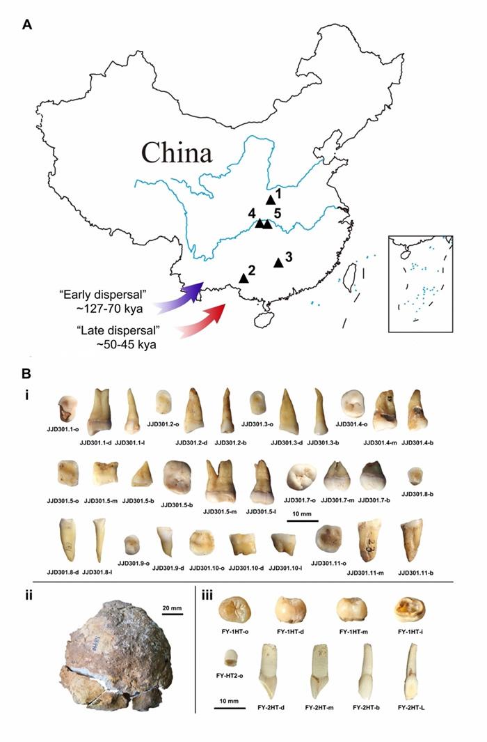 新研究表明:少有可能,现代人在5万年前已经到达中国。2015年的研究结果,很大程度上依赖于统一的化石测年方法。该方法可估算含人类牙齿沉积物上方和下方洞穴物质的年龄。对DNA本身进行分析具有更高的精准性,但此前并未做此项工作。