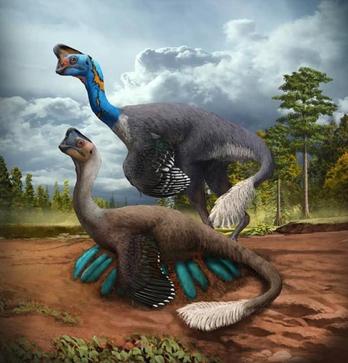 中国江西省出土的7000万年前化石中发现一只窃蛋龙正在孵卵