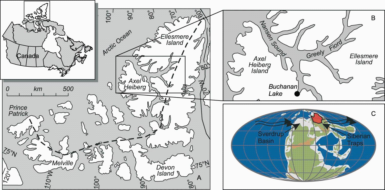 (化石网整理)据中国科学技术大学:距今约2.5亿年的二叠纪末期,地球上曾发生过一次最大规模的生命灭绝事件,造成海洋中超过90%以及陆地上超过70%的生物消失。中国科学技术大学沈延安课题组以高精度镍(Ni)同位素分析为主要手段对加拿大北极地区的晚二叠-早三叠地层进行了系统研究,提出西伯利亚大火成岩省喷发产生的含镍气溶胶是二叠纪末生命大灭绝的重要因素这一新观点。相关研究成果近日以“Nickel isotopes link Siberian Traps aerosol particlesto the end-Permian mass extinction”为题发表于综合学术期刊《自然-通讯》(Nature Communications)。