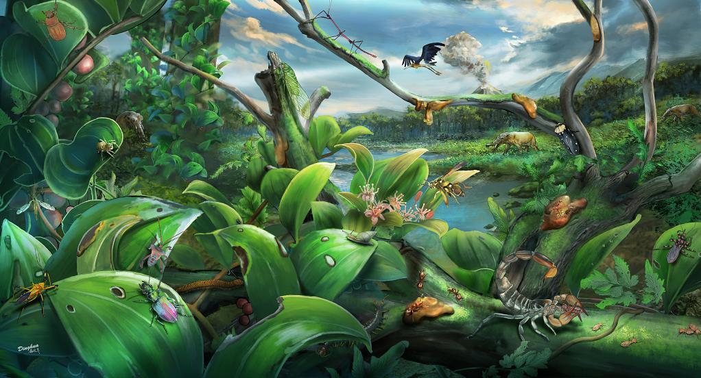 福建省漳州市漳浦县发现1500万年前天然“远古生物博物馆”(漳浦生物群生态复原图 南古所画师杨定华绘制)