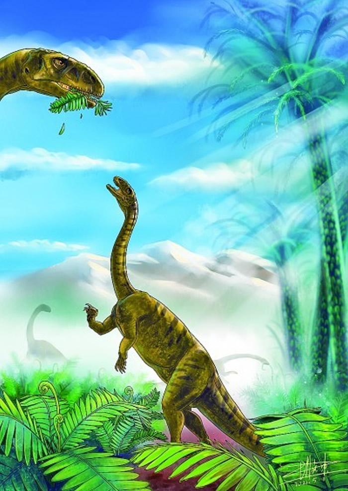 系统发育分析结果表明,该恐龙幼体化石是蜥脚型类中的大足龙分支,但与云南已发现的20属种恐龙有明显差异,初步认定这是一新属种恐龙幼体。该幼体化石的牙齿呈叶状,是一类植食性恐龙,食物以蕨类和松柏类为主。