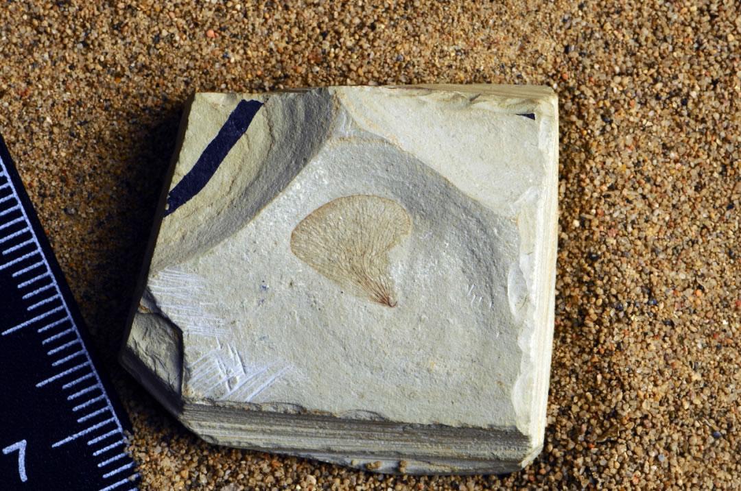 2009年,中科院古脊椎所邓涛团队在青藏高原进行科学考察,在采集动物化石时,常伴有植物化石。这些可能与植物相关的化石,被分批分次地送到了王宇飞手中。在众多化石中,一块采自青藏高原中部伦坡拉盆地(现西藏那曲市域内)、带有脉络清晰的扇形轮廓印痕的化石引起了王宇飞的注意。“在鉴定这块化石时,起初是有不同认识的,有人认为印痕是昆虫翅膀,我感觉其中有二歧分支的脉络,结构和质地都像植物而非动物。”王宇飞说。