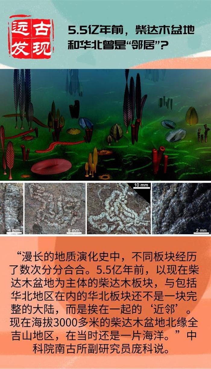 “漫长的地质演化史中,不同板块经历了数次分分合合。5.5亿年前,以现在柴达木盆地为主体的柴达木板块,与包括华北地区在内的华北板块还不是一块完整的大陆,而是挨在一起的‘近邻’。现在海拔3000多米的全吉山地区,在当时还是一片海洋。”庞科说。