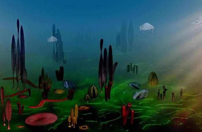 埃迪卡拉生物群化石复原图。中国科学院南京地质古生物研究所陈哲绘图。