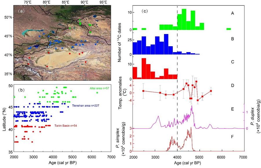据介绍,团队结合考古资料发现,温暖气候促进了史前人类在相对寒冷的阿尔泰山及周边地区活动;极端变冷事件可能触发了阿尔泰山地区史前人群向南迁徙,才使得南北疆盆地绿洲出现早期文明。同时发现,我国北方季风边缘区黄土高原和青藏高原的一系列文化更替可能与中晚全新世的温度变化有关,如温暖气候为我国新石器文化鼎盛、宗日文化在青藏高原出现提供了气候条件,而冷气候事件则迫使人群南向迁徙、技术更新、生业模式转换,开启了我国青铜时代,促进东西方文化交流。