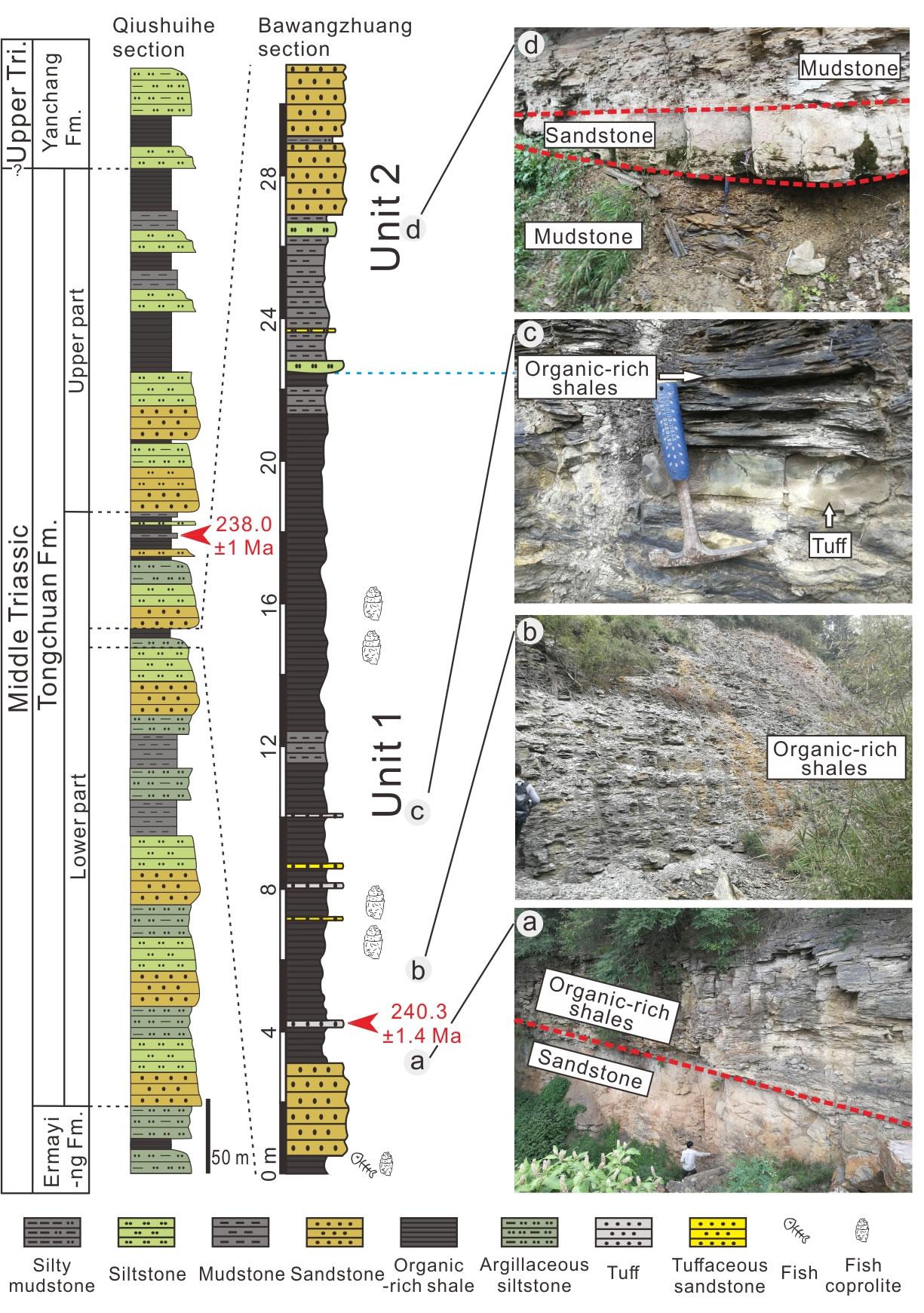 鉴于此,中国科学院南京地质古生物研究所博士研究生赵向东,在王伟(女)副研究员的指导下,与中石油长庆油田解古巍工程师和中石油勘探院潘松圻工程师等人合作,经过系统的野外样品采集和室内实验室数据分析,采用岩石矿物学和地球化学相结合的分析手段,分析了鄂尔多斯盆地霸王庄露头剖面铜川组油页岩的沉积环境。分析结果对铜川组油页岩的形成与保存环境恢复提供了重要依据,相关研究成果已于近期发表于国际期刊《地质学杂志》(Geological Journal)上。