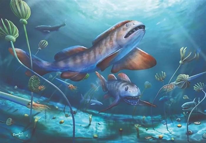 2.9亿年前山西阳泉瓣齿鲨的生态复原图(杨定华绘)