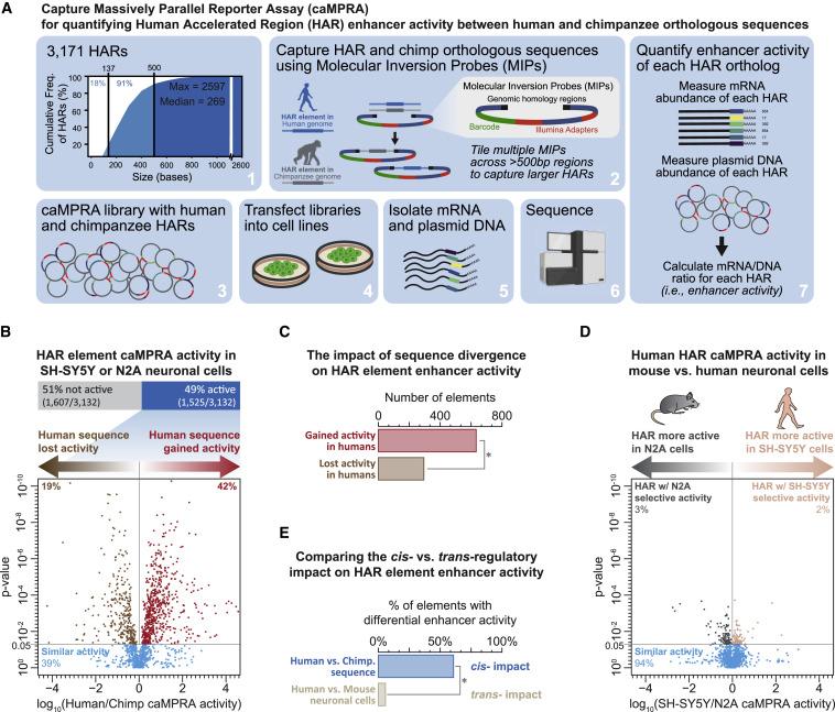为了克服早期研究方法的局限性,研究论文通讯作者、哈佛大学医学院的Christopher Walsh和同事开发了一种名为CaptureMPRA的新方法。该方法利用分子条形码倒置探针捕获目标序列(HAR及其周围DNA)。通过研究,研究小组确定了210种HAR,它们显著增强了人类神经细胞中的基因活性。这些HAR可能影响人类大脑发育。