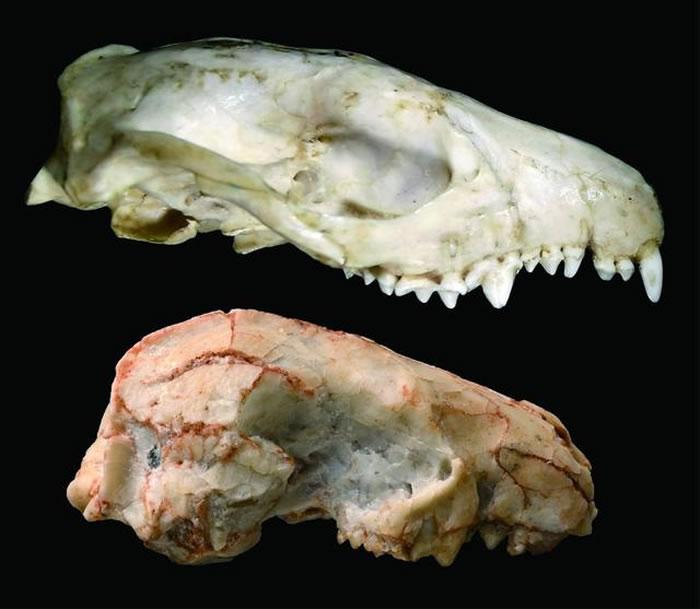 猬亚科大耳猬(上)与短面猬亚科准噶尔合短面猬(下)头骨对比示意图(李录摄,中科院古脊椎所供图)
