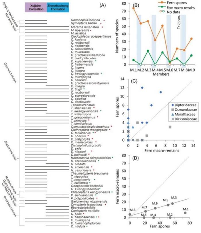 四川盆地三叠纪-侏罗纪之交真蕨植物与孢子化石属种多样性的比较