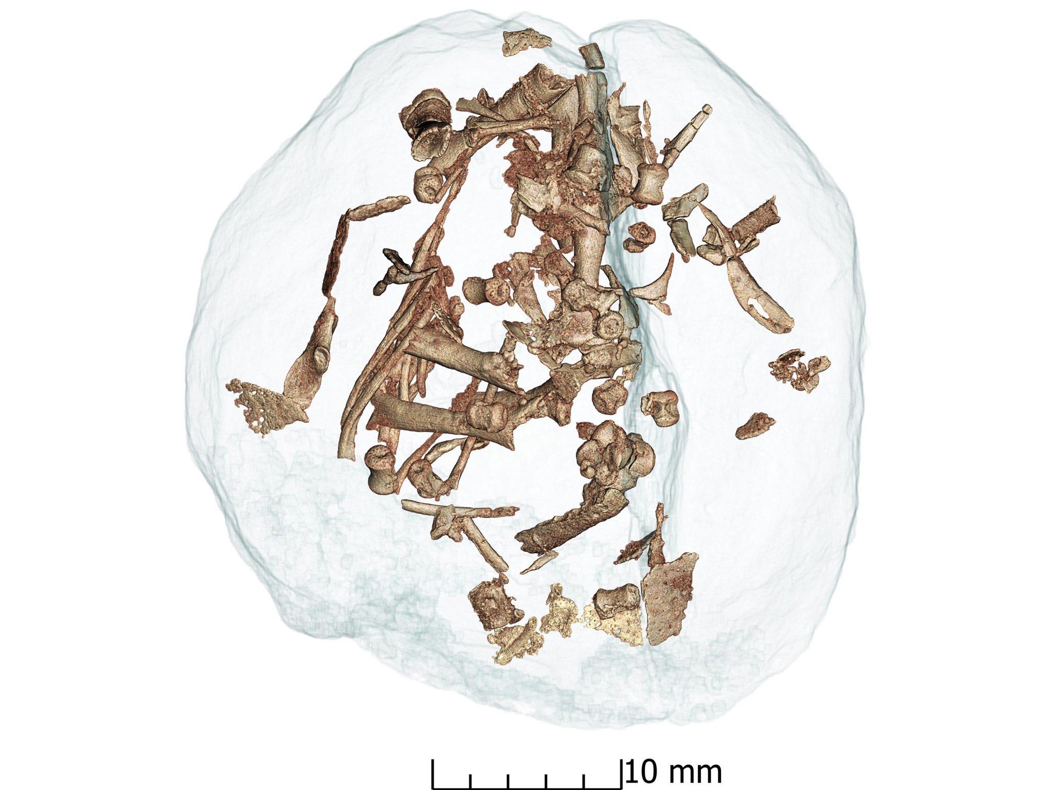 经过从阿根廷出发的复杂旅程(不是每天都有人把恐龙蛋作为大陆间的随身行李),Pol带着在现场发现的 100 多个蛋中的 30 个来到 ESRF,用强大的X射线对它们进行仔细检查。费尔南德斯解释说:“我们花了4天时间昼夜不停地扫描这些蛋,这很累人,但令人振奋的结果却鼓舞了士气”。高分辨率计算机断层扫描显示在一些蛋内有 Mussaurus 的胚胎化石,并显示所有这些化石属于一个单一恐龙物种的公共繁殖地。
