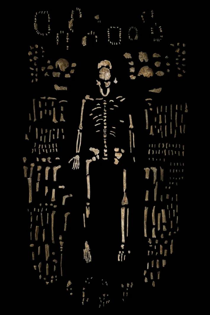 洞穴里的迪纳勒迪岩岩室少有15具纳莱迪人的遗骸,上图是其中一具遗骸拼合后的情形。摄影:ROBERT CLARK