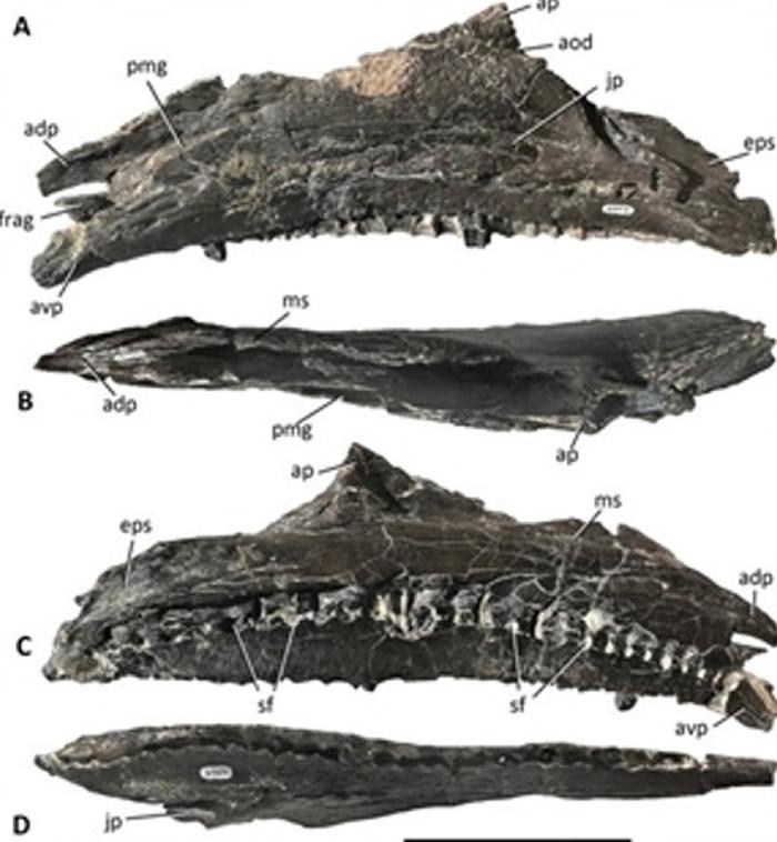 时隔40多年,科研团队对这些标本进行研究时,发现了这一新的恐龙物种。据科研人员介绍,这种恐龙有着更细长的圆形鼻子,牙齿也更多。科学家们估计,出土的这只恐龙身长约为 26 英尺(8 米),重约 2200 磅(1000 公斤)。