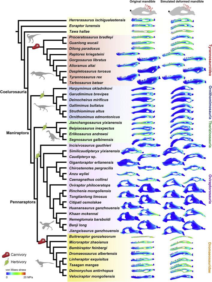 由伯明翰大学的科学家领导的国际团队创建了来自五个不同的兽脚亚目恐龙群体的40多个下颚的数字模型,包括典型的食肉动物,如霸王龙和迅猛龙,以及不太知名的食草动物,如似鸟龙、镰刀龙和窃蛋龙。