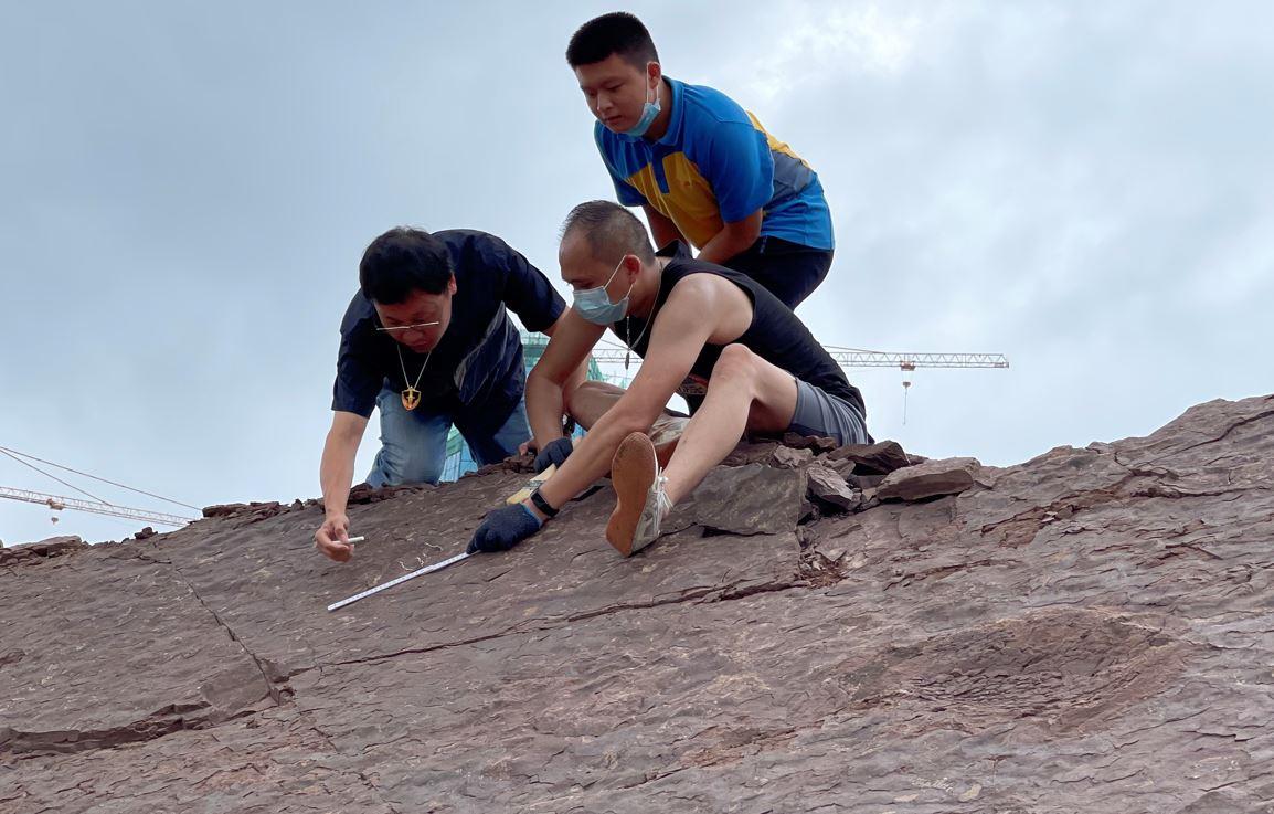 随后,邢立达课题组,地质与古生物专家张显球等专家学者来到怀集,对已暴露的恐龙足迹及其岩层层面进行了详细研究,并利用无人机,立体扫描等手段记录了足迹状况。