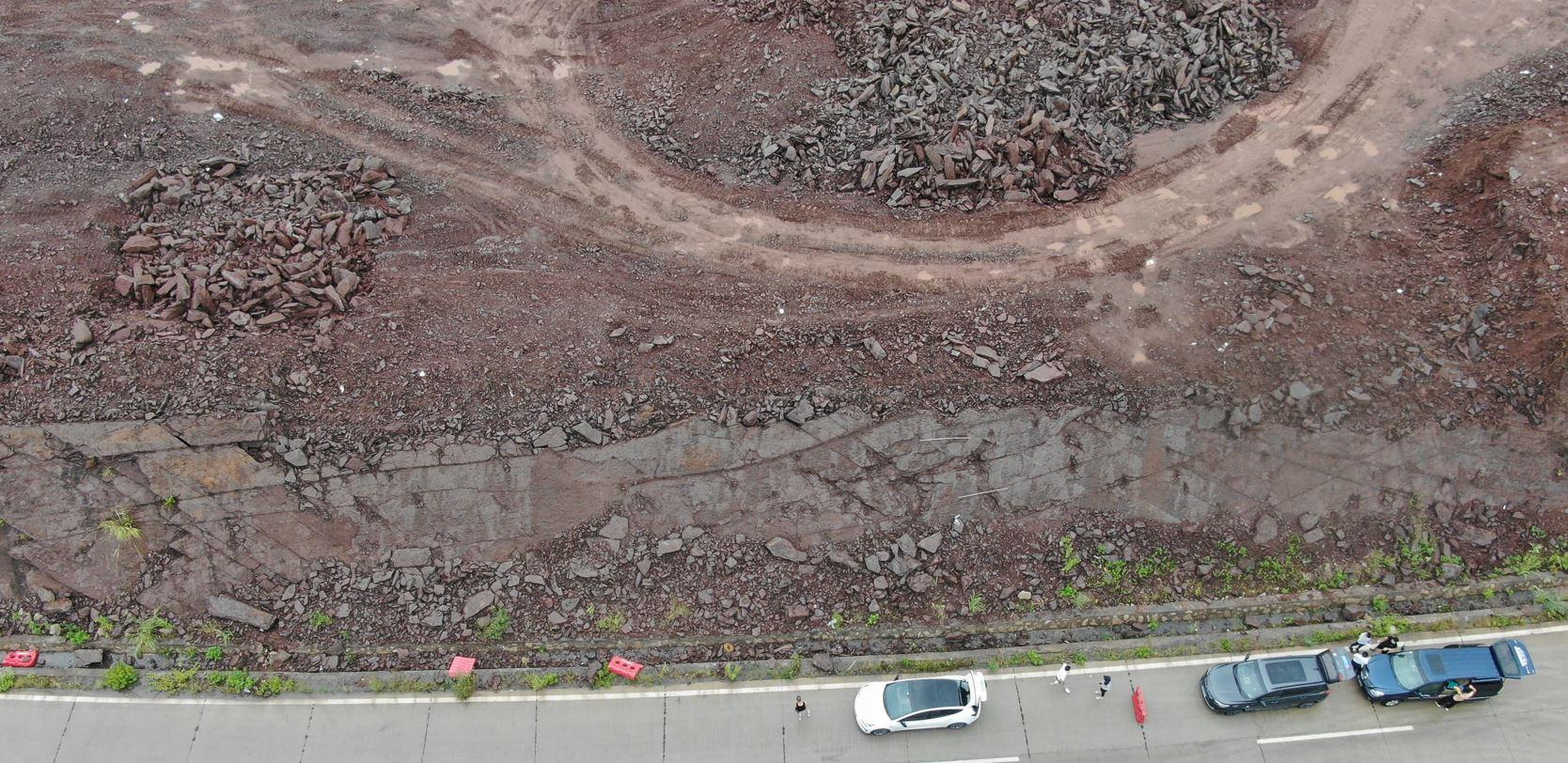 随后,邢立达课题组,地质与古生物专家张显球等专家学者来到了怀集,对已暴露的恐龙足迹及其岩层层面进行了详细研究,并利用无人机,立体扫描等手段记录了足迹状况。