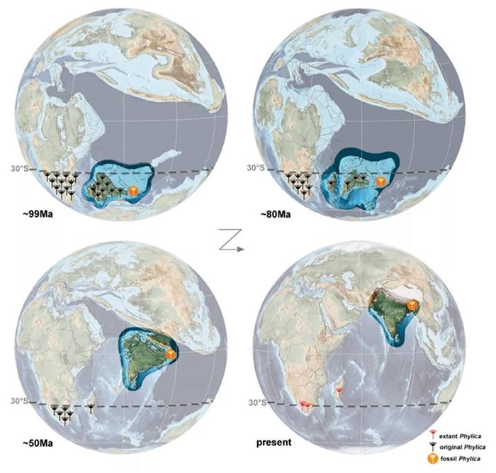 这1亿年间地球发生了巨大的变化,气候剧变、板块漂移、海陆变迁,期间还发生了白垩纪—第三纪生物大灭绝(距今约6500万年),恐龙因此消失,Phylica的其它姐妹群也逐渐灭绝。