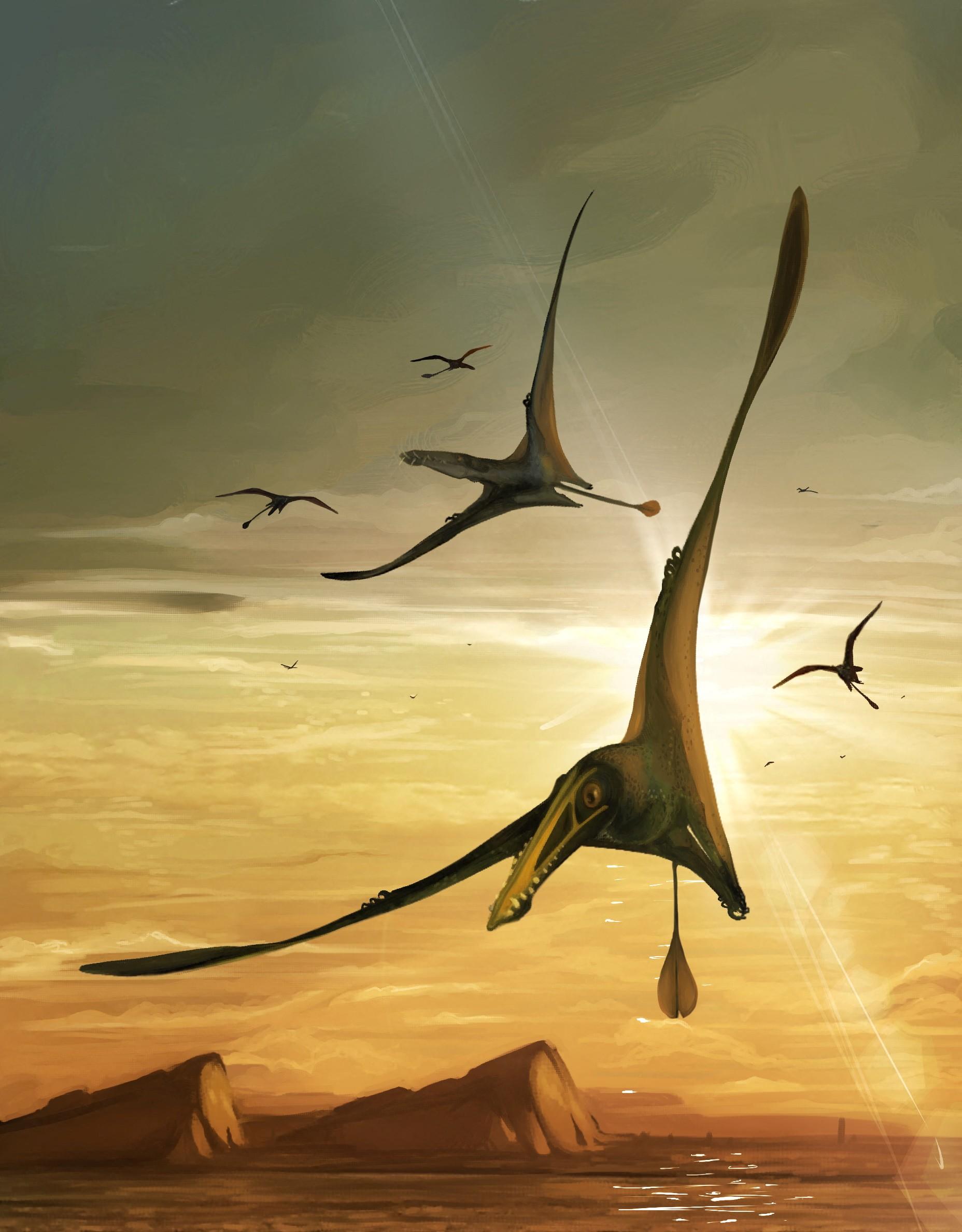 翼龙在2.3亿年前的三叠纪时期进化为小型有翼爬行动物。但到了白垩纪,当时常见的陆生恐龙(如霸王龙和三角龙)四处游荡,风神翼龙这样的家伙已经长到现代战斗机大小,翼展12米宽。