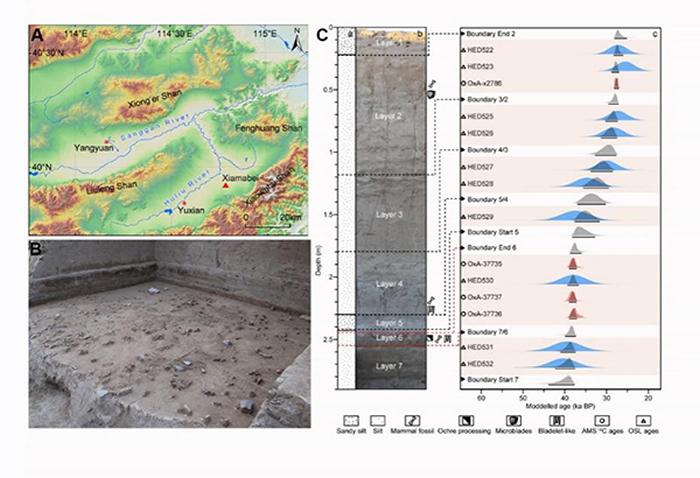 这项研究报告了下马碑的考古发现结果。他们发现了赭石加工的最早证据和一批创新工具,可以追溯到41000年前-39000年前。