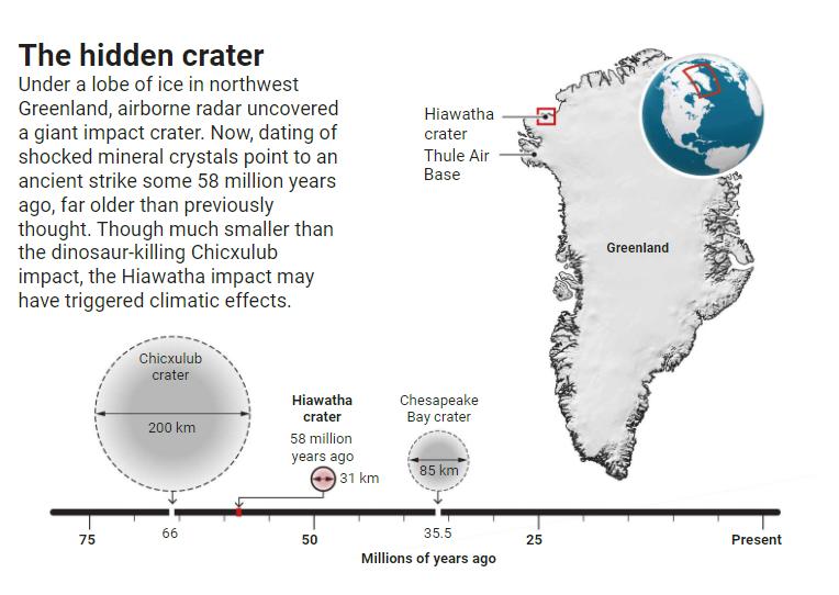 研究发现格陵兰岛的海华沙撞击坑有5800万年历史