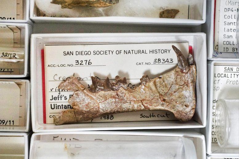 该化石来自加利福尼亚州南部的圣迭戈县,在20世纪80年代由当地一个12岁的男孩首次发现。从那时起, “Jeff’s Discovery Site” 已经成为被称为圣迭戈地层的较大岩石群中的一个重要化石床。在这些有4200万年历史的岩石中发现了整个生态系统的化石,描绘了与今天所知的圣迭戈非常不同的画面。虽然基本上无法进入,但这些重要的化石床偶尔会因建筑项目和道路扩建而暴露出来,使来自The Nat的科学家能够继续挖掘加利福尼亚古老的热带历史的证据。