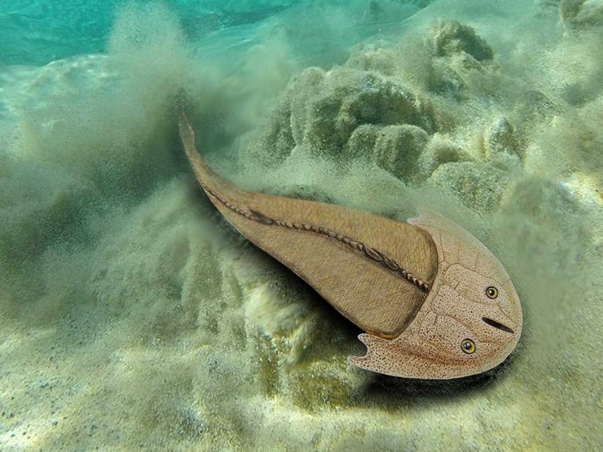 据重庆地质矿产研究院陈阳博士介绍,滨海涌洞鱼是一种盔甲鱼类,新研究成果在系统分类学上将其命名为涌洞鱼科、涌洞鱼属、滨海种。脊椎动物根据颌部是否发育分为无颌类和有颌类,而盔甲鱼则是已灭绝的“戴盔披甲”的亚洲东部地区特有的无颌类,主要生存于浅海和滨海环境。其化石往往纹饰精美、形态奇特,与现生的鱼类形态有较大区别,可以说是“稀奇古怪”,具有较高观赏价值。同时,盔甲鱼演化规律的研究能还原诸多脊椎动物早期演化的历程,对生命早期演化阶段的研究至关重要。