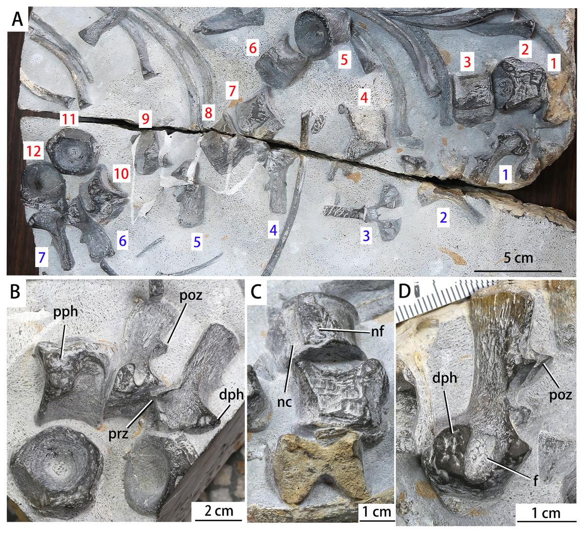 研究团队利用电锯等发掘工具将含有化石的围岩一并取回,并在中国地质调查局武汉地质调查中心进行了历时3个月的修复。研究表明,该化石主要包含了躯干的前半部分,包括前部背椎(椎体和椎弓)、肋骨、腹膜肋和一块肢骨。化石发现于海相地层中,且具有双凹型椎体等海生爬行动物的典型特征。但由于化石未保存头骨和大部分肢骨等关键部位的特征,给鉴定带来了一定的困难。