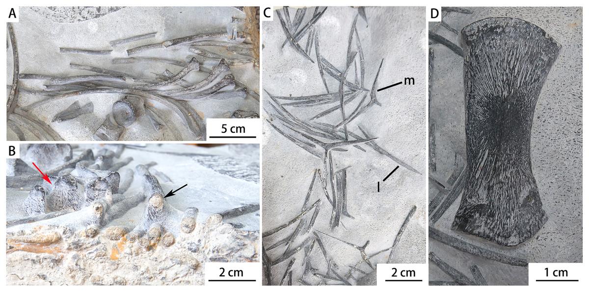 经过多方对比研究,他们最终识别出了一些关键特征,如肋骨比较纤细且在近端不加厚,腹膜肋中部具有长而细的突起。“这件标本虽然保存不完整,但具有鱼龙类所独有的一些特征,不同于鳍龙类等其他海生爬行动物。”韩凤禄对《中国科学报》说。