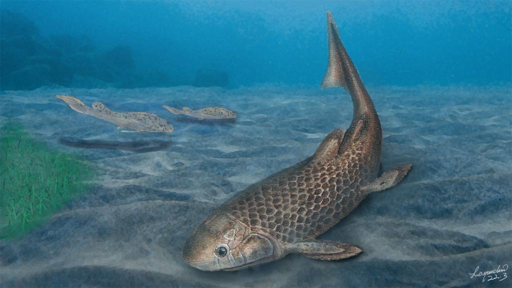 会泽滇双翼鱼生态复原图 (罗彦超、马萌绘,罗彦超供图)