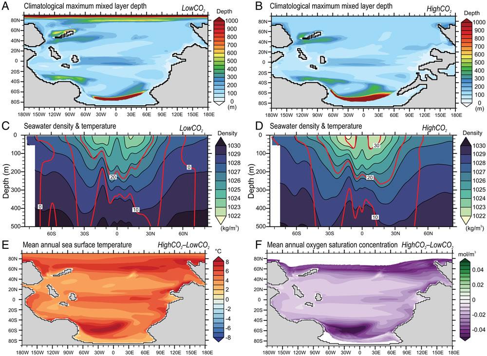 研究结果显示,石炭纪晚期(约3.04亿年前)冰室气候下,约9万亿吨碳在30万年内排向大气,从而引起了当时全球气候的显著变暖。其间海水表面温度升高约4℃,全球海洋缺氧面积扩张至18%,海洋生物多样性在短期内显著下降。地球系统模型研究表明,在冰室气候的全球变暖期间,广泛的海洋缺氧可能与海水分层的增强和营养输入的增加(消耗氧气)相关。