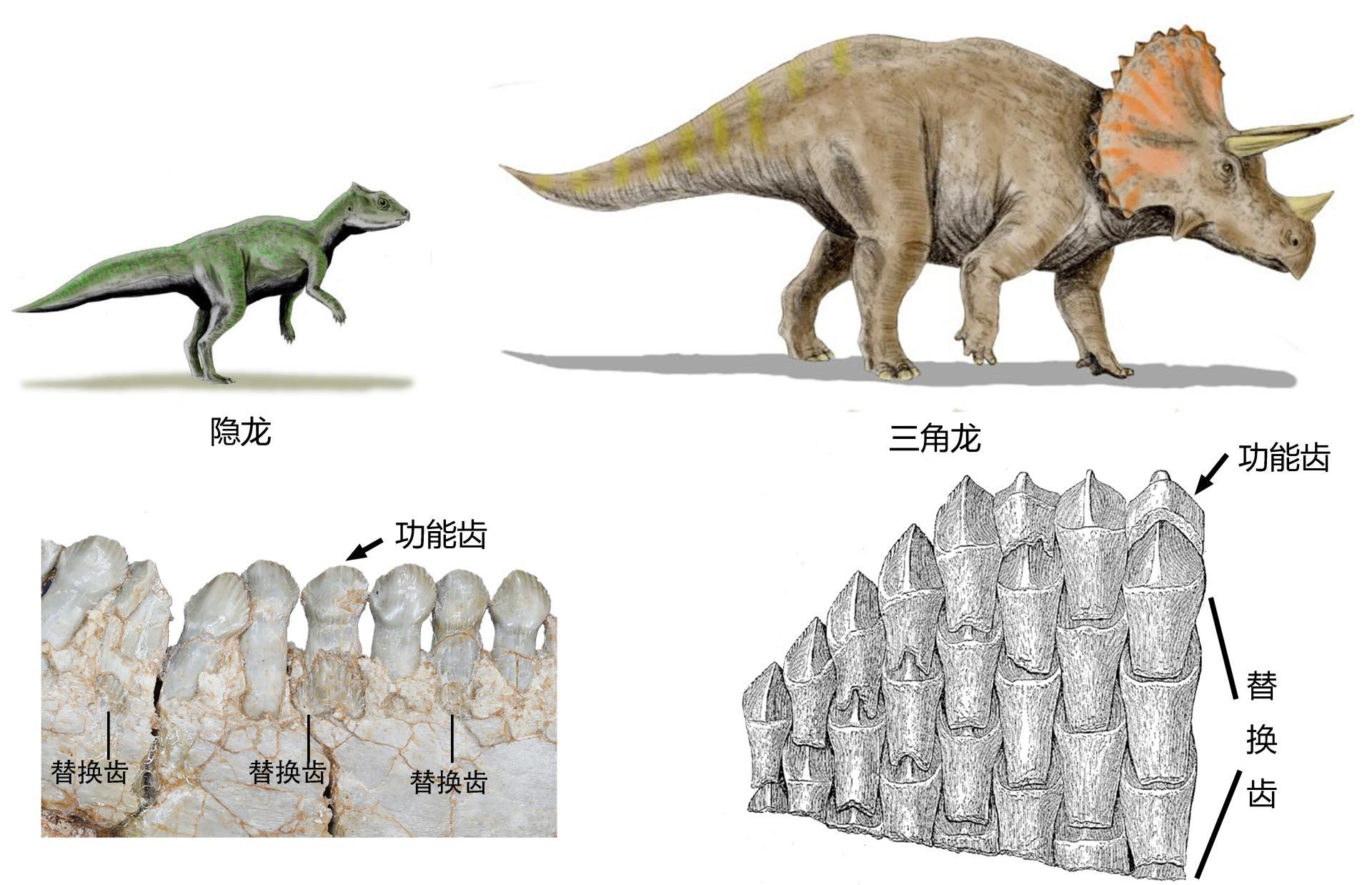 “一般来说,替换齿数量增多,是因为恐龙需要更快的牙齿生长速率,那么替换齿少的类群牙齿生长速率一般也较慢,换牙频率就更慢。”韩凤禄解释说,此外,早期角龙类的新牙从旧牙的内部长出,而三角龙中新牙从旧牙的底部长出,和早期角龙相比,三角龙还演化出了复杂牙齿组织,能帮助它们更有效率地咀嚼进食。