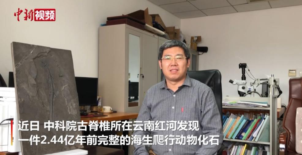 成果发布前,论文第一作者和通讯作者徐光辉研究员在北京接受中新社记者专访,对“长尾红河龙”化石发现及研究成果进行科普解读。