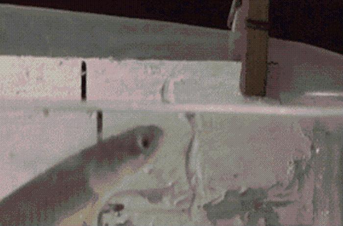 图5 原始辐鳍鱼类多鳍鱼浮出水面用喷水孔呼吸空气的瞬间(15%的播放速度)(潘照晖技术转换自Graham et al., 2014)