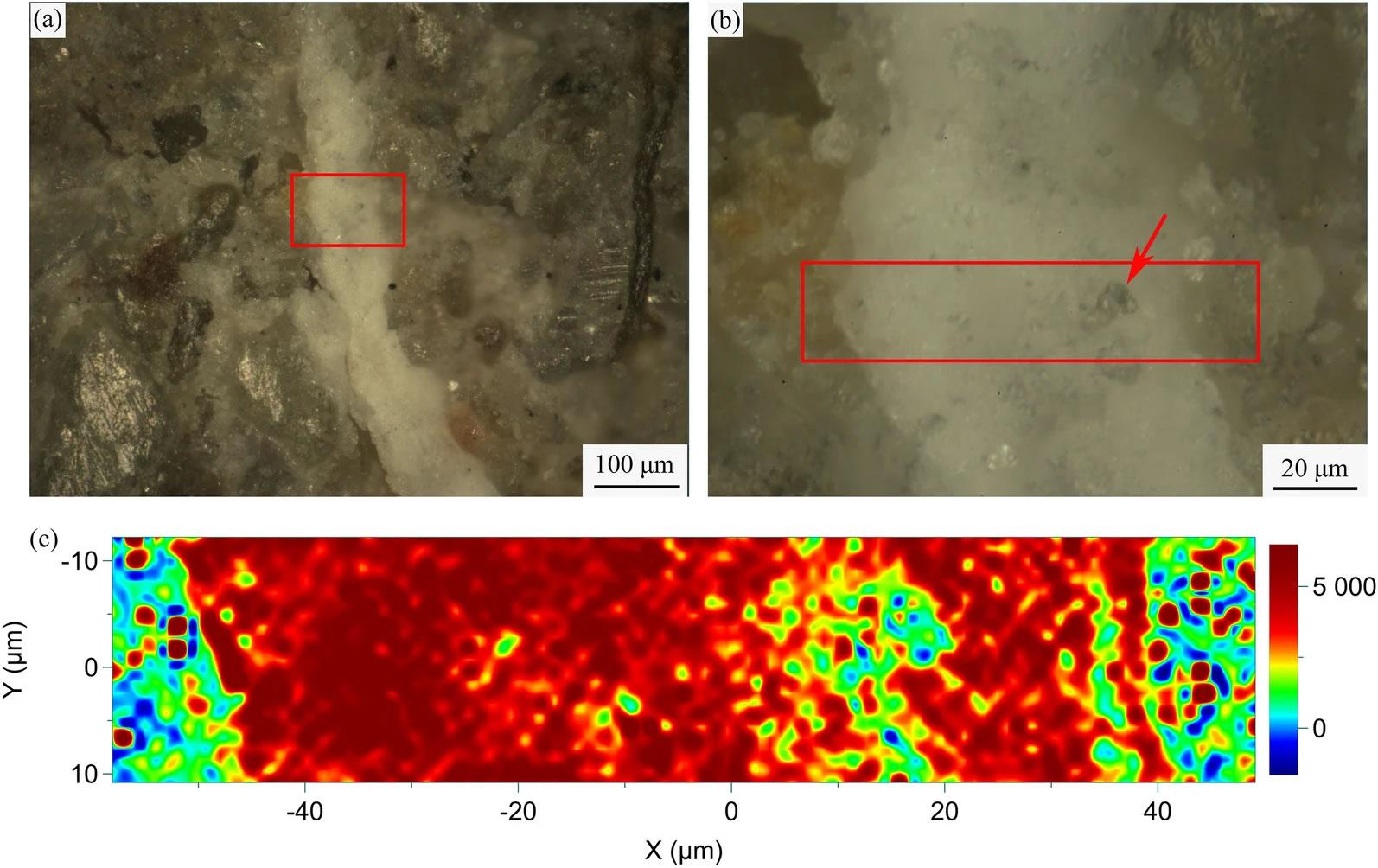 为确定蛋壳中含钙矿物和含磷矿物的具体物相,研究团队采用激光共聚焦拉曼显微镜对样品进行测试,结果表明其是磷灰石类矿物。为进一步明确磷灰石在翼龙蛋壳中的分布,研究者对蛋壳截面进行拉曼光谱面扫描,结果显示蛋壳自内而外均含有磷灰石,结合蛋壳中含有的氟元素,推测翼龙蛋壳的主要矿物成分是氟磷灰石。