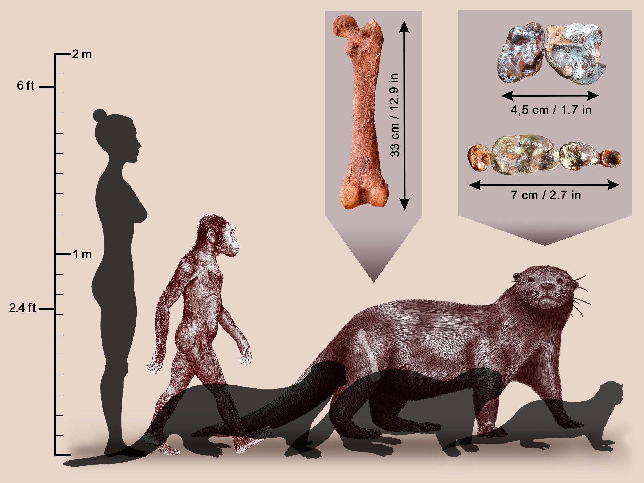 该古代巨型水獭主要生活于350万至250万年前,研究人员从出土的齿骨和股骨化石分析,发现它约200公斤重,类似陆生动物会捕食水中生物、陆上小型动物及所有品种的植物。这与现代水濑吃鱼及软体动物的习性截然不同,研究人员推测当年巨型水濑会是古人猎食的强劲竞争对手。